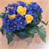 Petite coupe lestée. Création faite à base de pensées de couleur mauve et jaune.