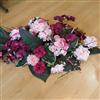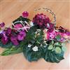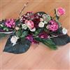 Gerbe de fleurs avec un joli pouvoir couvrant. Composition lestée. Fleurs couleur dominante violine et rose.