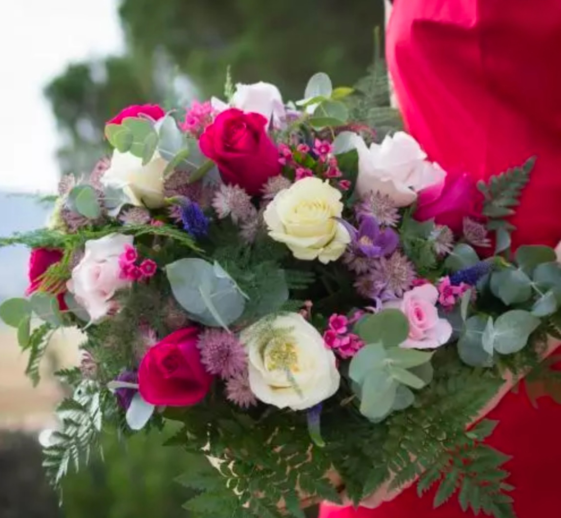 • Feuillage naturel : Eucalyptus et fougères pour un rendu frais et équilibré.