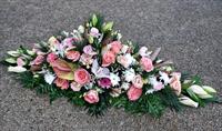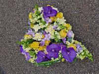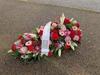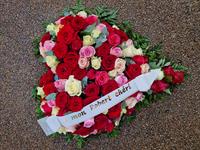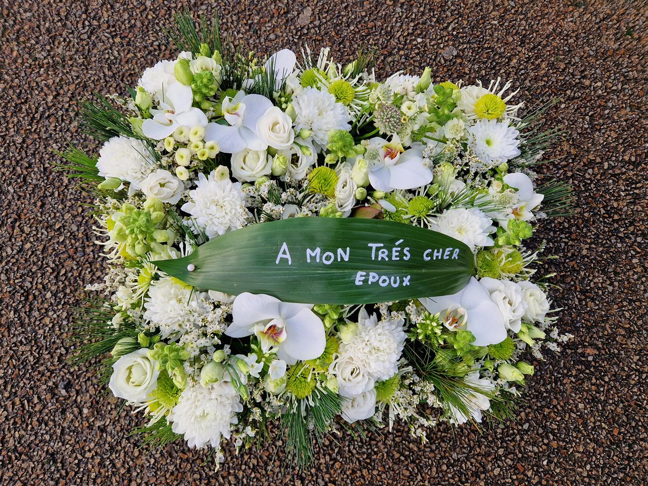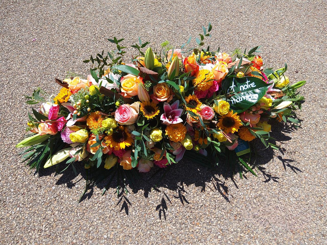 | Coeur Plein - Avec ruban Composition florale aux couleurs variables selon les saisons, avec possibilité de ruban personnalisé.