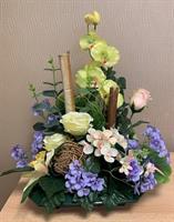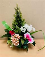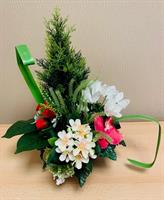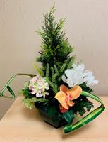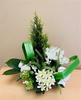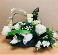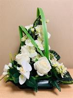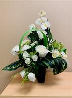 | Bouquet de fleurs artificielles Bouquet lesté pour éviter la prise au vent dans les tons blanc ( rose et orchidées) composition pouvant être mise dans un vase.