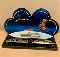 | Plaque en plexiglass Plaque en plexiglass taille 35 cm sur le thème papillon avec possibilité de mettre 3 inscriptions personnalisables (exemple A ma Mamie, A mon papi , je ne vous oublierai jamais).