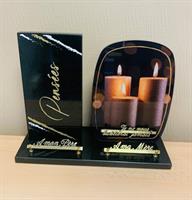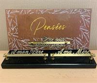 | Plaque en granit et plexiglass Plaque en granit et plexiglass taille 35 cm sur le thème de la pensée et de la bougie avec possibilité de mettre 3 inscriptions personnalisables (exemple A mon père, A ma mère, Je ne vous oublierai jamais).