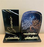 | Plaque en granit et plexiglass Plaque en granit et plexiglass sur le thème arbre de vie taille 35 cm avec la possibilité de mettre 3 inscriptions personnalisables (exemple A mon papi, A ma mamie, Je ne vous oublierai jamais).
