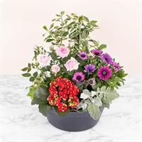Composition colorée avec 4 - 5 plantes et fleurs de saison - Diamètre env. 30 cm - Convient pour les cimetières