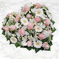 Cœur de fleurs de saison de tonalité pastel - Env. 45 cm - Ruban inclus avec 50 caractères max.