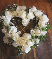 Photo non contractuelle | 🌸Cœur Évidé « Pureté Éternelle » Le cœur « Pureté Éternelle » en roses blanches et gypsophile symbolise l’amour pur et éternel, parfait pour un hommage sincère et touchant.