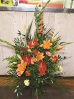 • Feuillage naturel : Palmes, aspidistra et verdure pour donner hauteur et structure.