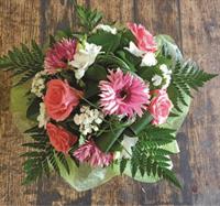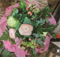 Photo non contractuelle | 🌸Bouquet « Bulle Pastel » Le bouquet « Bulle Pastel » mêle roses tendres, vert doux et feuillage, exprimant affection et douceur.