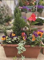Photo non contractuelle | 🌸Coupe de plantes « Nature Éternelle » La coupe « Nature Éternelle » associe pensées colorées, conifère et plante rouge, symbolisant souvenir et apaisement.