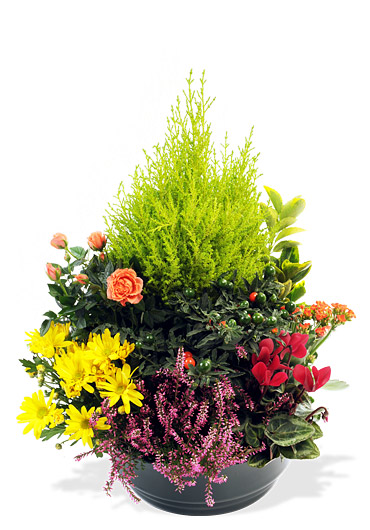 Pour que le jardin du souvenir reste à jamais fleuri. Forme et couleur du contenant non contractuelles. La couleur de la plante peut varier selon l'approvisionnement du fleuriste.