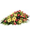 Les compositions de fleurs accompagnent traditionnellement nos aînés dans leur ultime demeure. Forme et couleur du contenant non contractuelles.