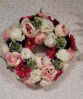 Photo non contractuelle | Grande couronne de fleurs en soie rose avec carte et/ou ruban Grande couronne de fleurs en soie rose avec carte et/ou ruban (livraison dans les 24 heures)