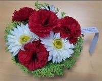 Photo non contractuelle | Bouquet plat de fleurs naturelles accompagné d'une carte Bouquet plat de fleurs naturelles de saison et accompagné d'une carte (photo non contractuelle - livraison dans les 24 heures)