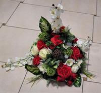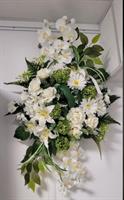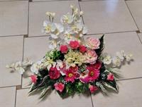 Photo non contractuelle | Devant de tombe en fleurs en soie Montage allongé et en hauteur de fleurs en soie (photo non contractuelle - livraison dans les 24 heures)
