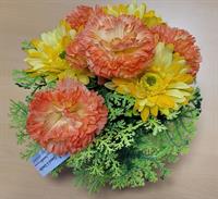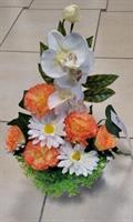 Photo non contractuelle | Gerbe en pot orange et blanche Pot composé de fleurs de soie avec une carte - Couleurs peuvent varier (photo non contractuelle - livraison dans les 24 heures).