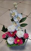 Photo non contractuelle | Fleur en soie allongée Montage allongé et en hauteur de fleurs en soie (photo non contractuelle - livraison dans les 24 heures)